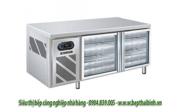 Bàn mát cánh kính nằm trong phân khúc bàn lạnh bàn mát quầy bar . Với cấu tạo cánh cửa bằng lớp kính cường lực trong suốt. Kết hợp cùng ánh đèn sáng trắng tăng khả năng trưng bày đẹp mắt.